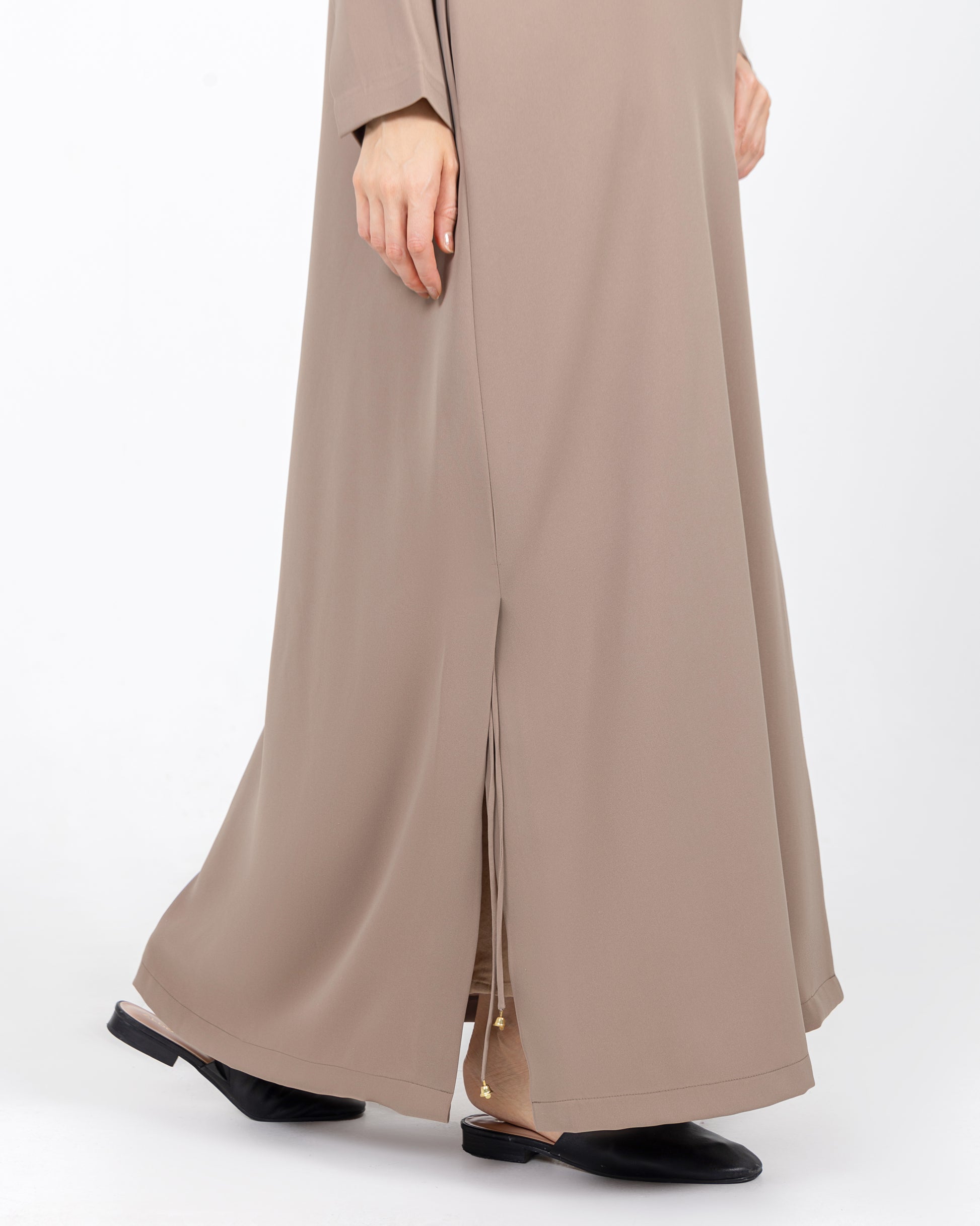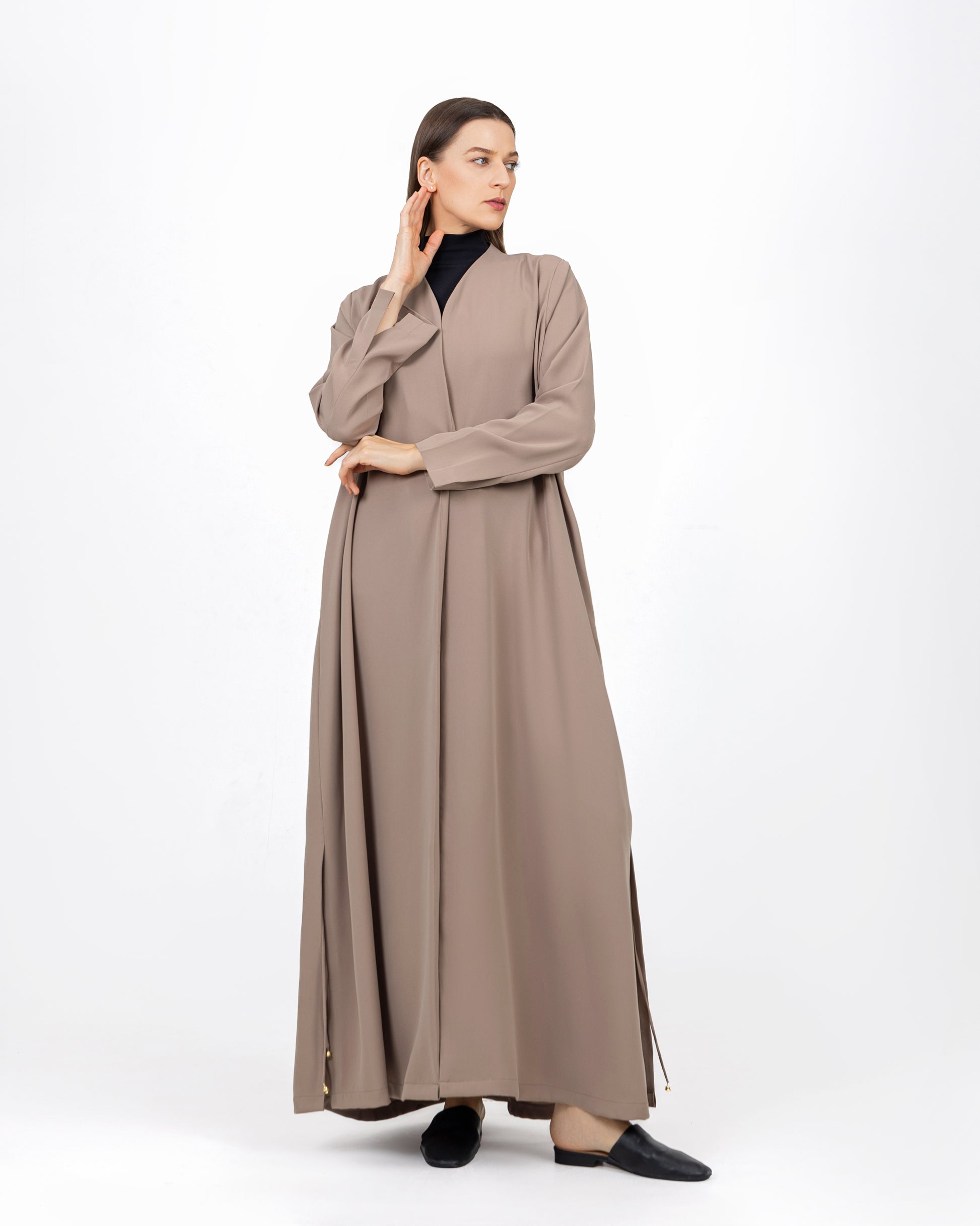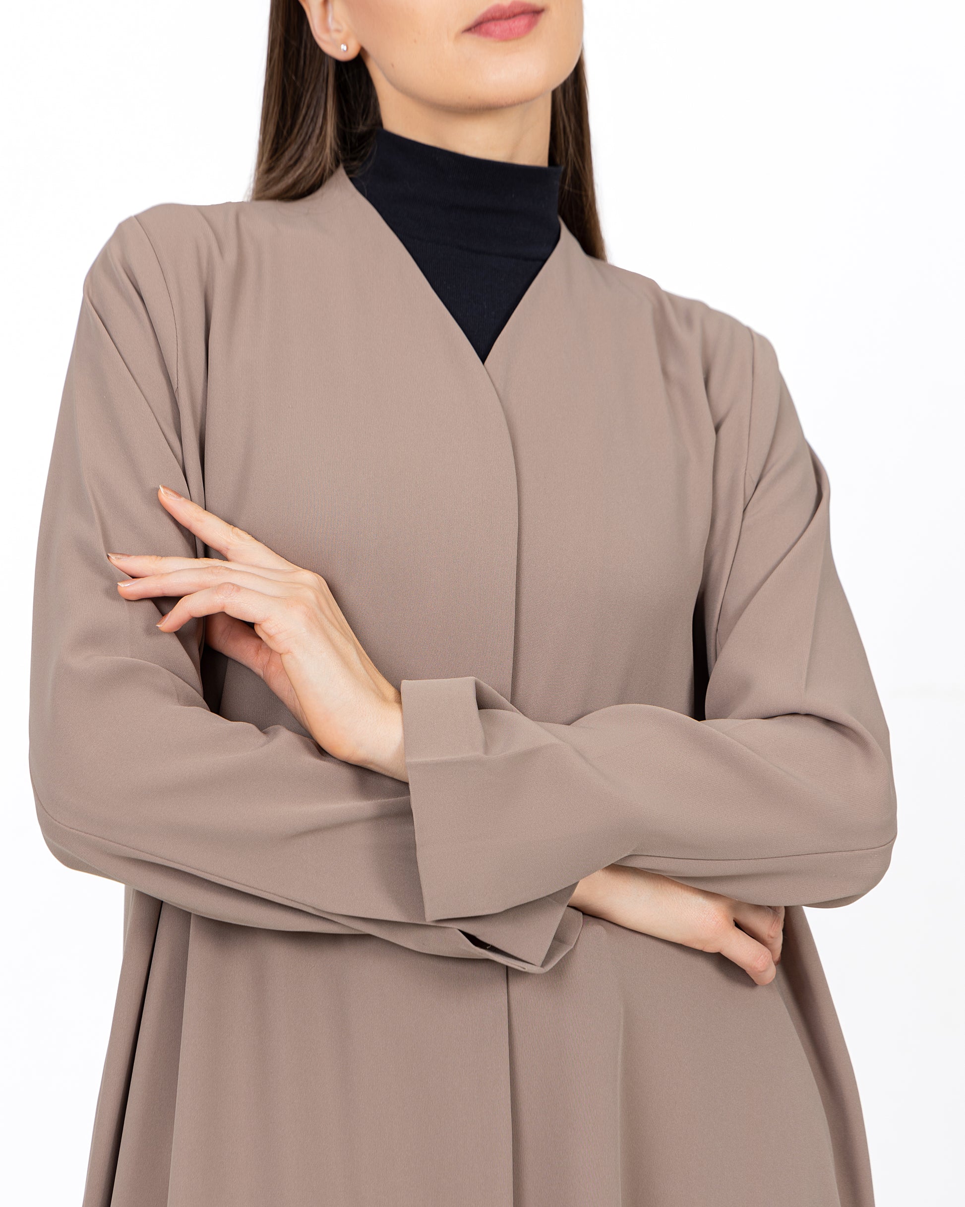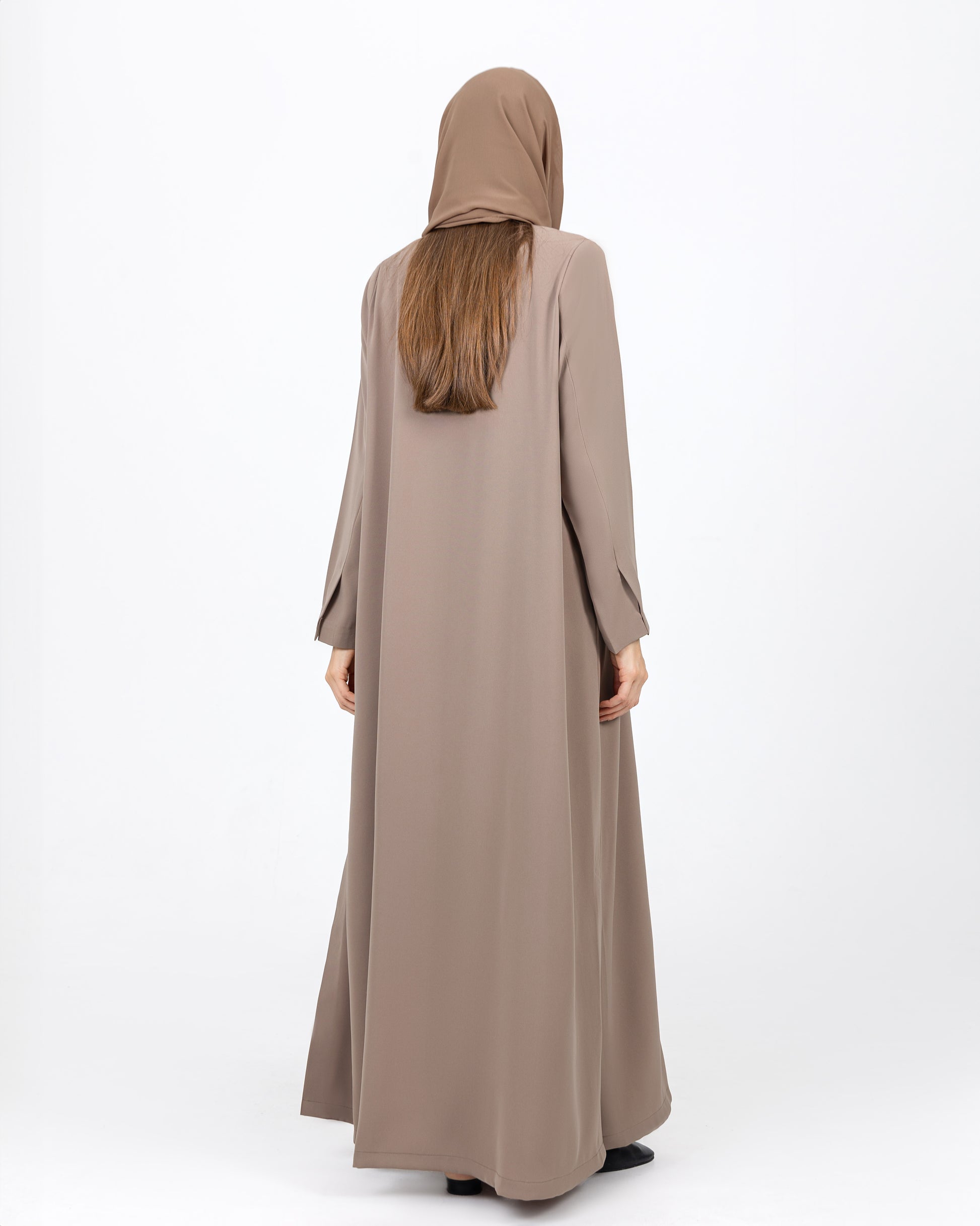 The Harmony Abaya is designed for effortless elegance, crafted from a smooth, slightly matte fabric that drapes beautifully for a relaxed fit.