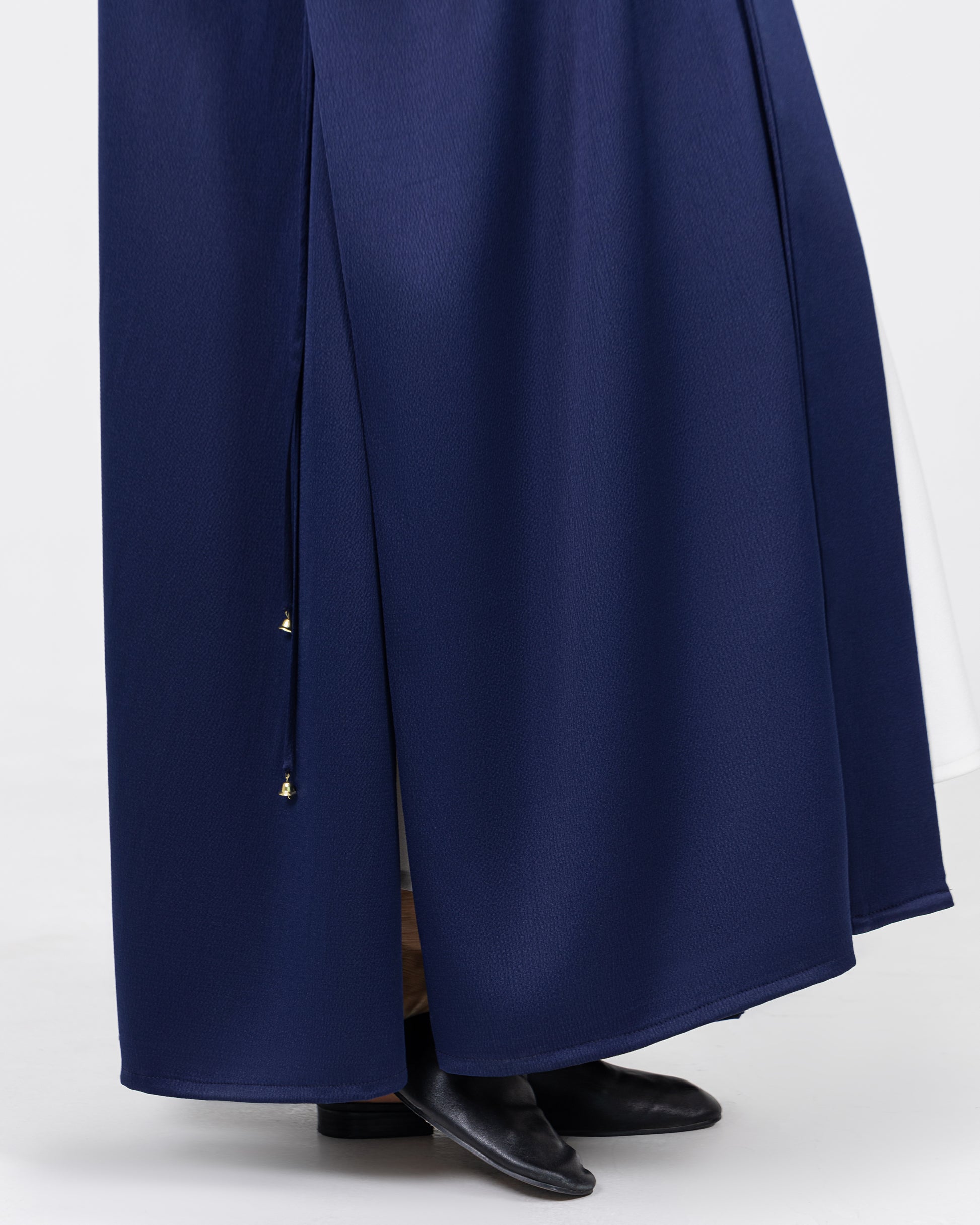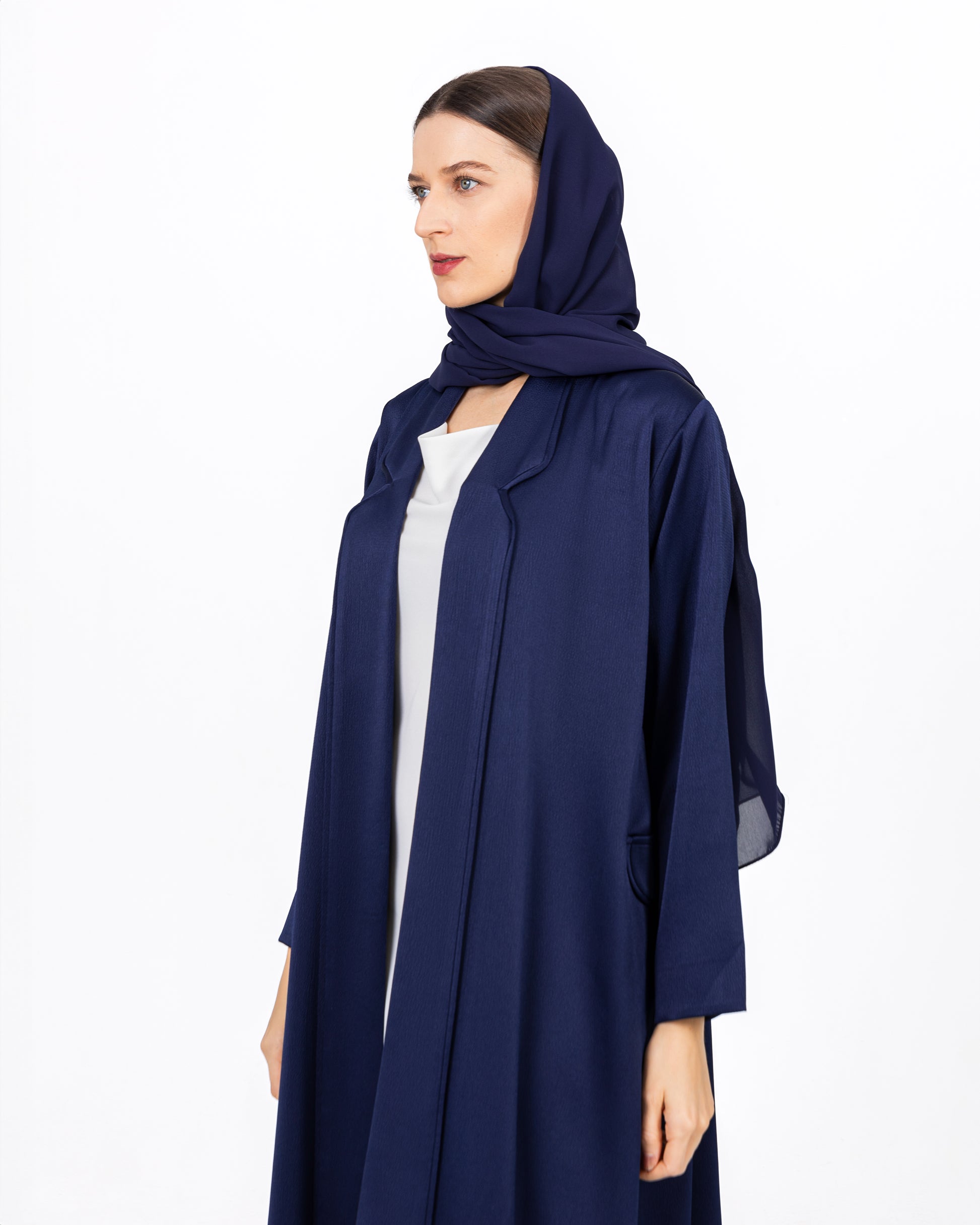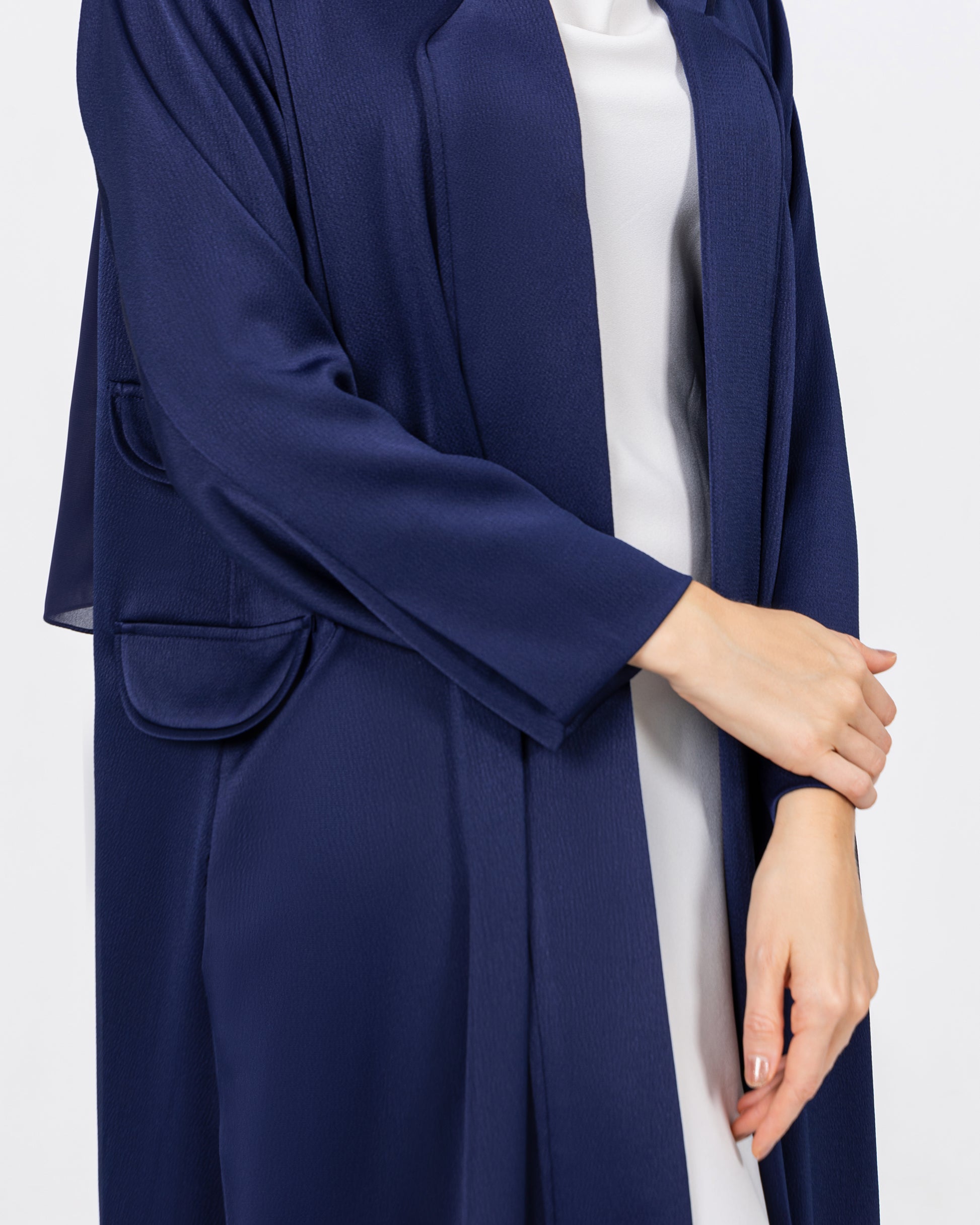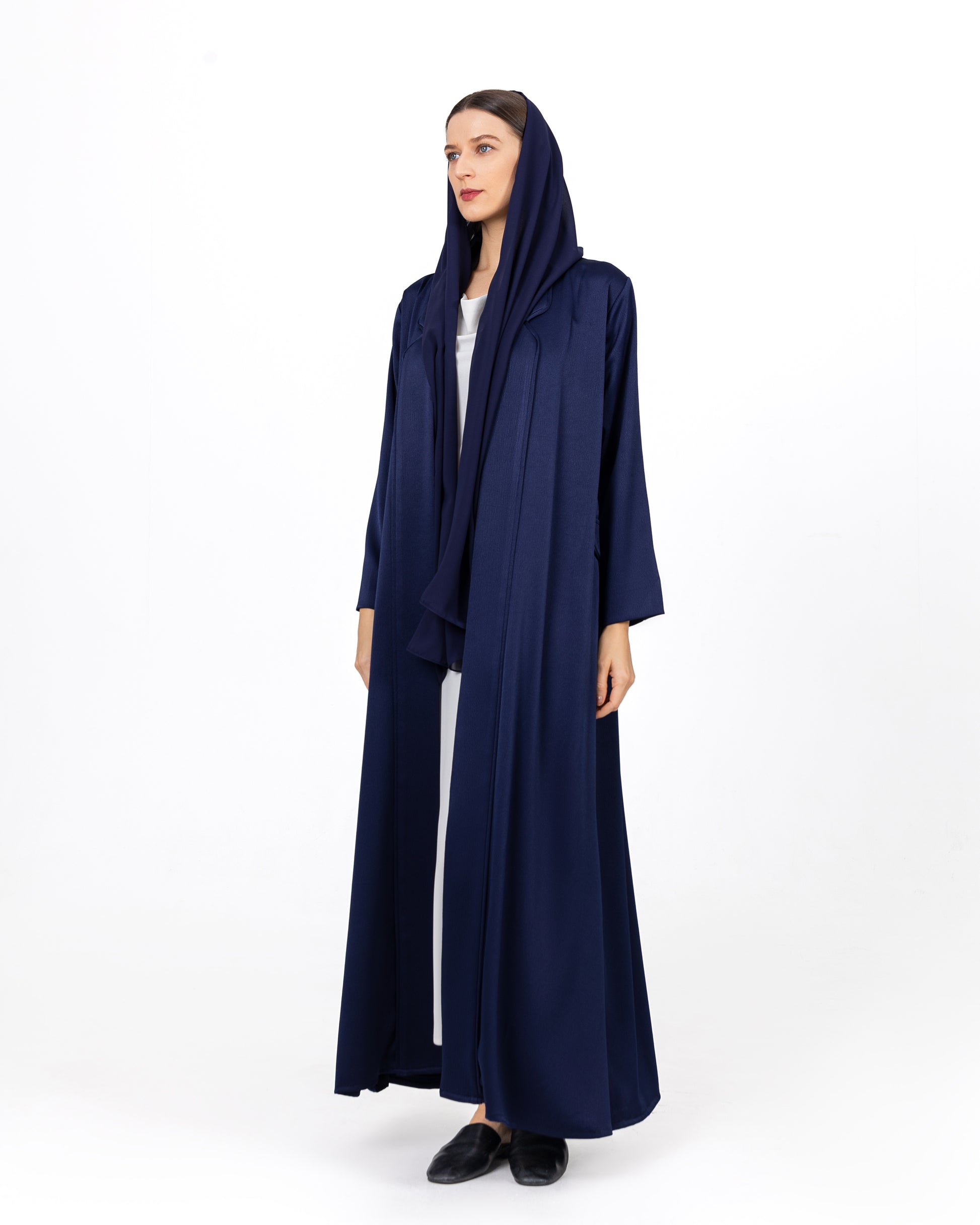 The Melody Abaya is crafted from a smooth, slightly textured woven fabric with a subtle sheen, offering both elegance and comfort.